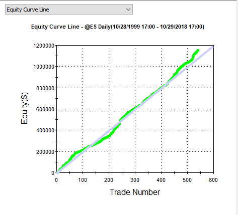Here’s the output that was created when this strategy as was added to a 19 year long ES daily bar chart: