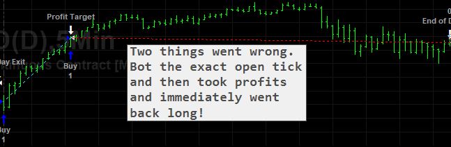 Good question. You can’t because it doesn’t work accurately all of the time. I just default to using 5 minute or less bars whenever I need to. A large portion of short term, including day trade, systems need to know the intra day market movements to know which orders were filled accurately. It would be great if you could just flip a switch and convert a daily bar system to an intraday system and Look Inside Bar(LIB) is theoretically that switch. Here I will prove that switch doesn’t always work.