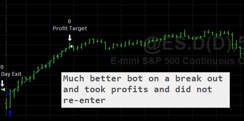You can of course use Daily Bars for fast system prototyping. When the daily bar system was tested with LIB turned on, it came close to the same results as the more accurately programmed intraday system. So you can prototype to determine if a system has a chance. Our core concept buyt a break out, short a break out, take profits and losses and have no overnight exposure sounds good theoretically. And if you only allow 2 entries in opposite directions on a daily bar you can determine if there is something there.