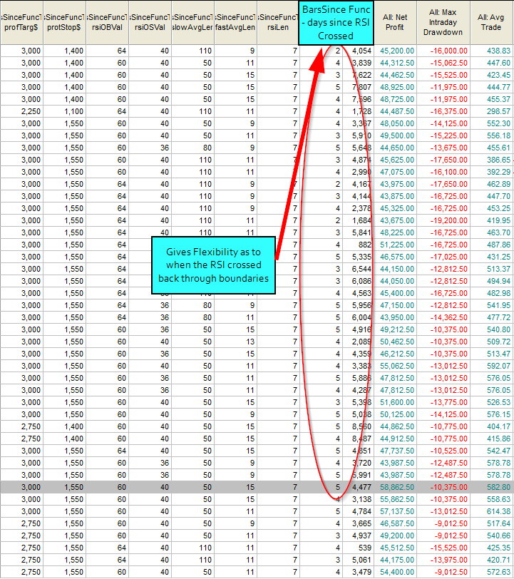 If we want to optimize these values then we can’t use the keyword bigPointValue in the input variable default value. So I removed them – also I added an input endTradingTime(1500). I wanted to cut off our trading at a given time – no use entering a trade five minutes prior to the closing.