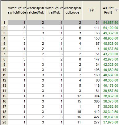 If you refer back to the optimization results you will notice that the average trade (before execution costs) was around $31. Keep in mind we were trading every day. This is just the beginning of your research – did we find a technical advantage? No. We just found out that you can enter and exit at different times of the trading day, and you can expect a positive outcome. Are there better times to enter and exit? YES. You can’t trade this approach without adding some technical analysis – a reason to enter based on observable patterns. This process is called FILTERING. Maybe you should only enter after range compression. Or after the market closed up on the prior day, or if the market was an NR4 (narrow range 4.) I have added all these filters so you can iterate across them all using the optimization engine. Take a look: