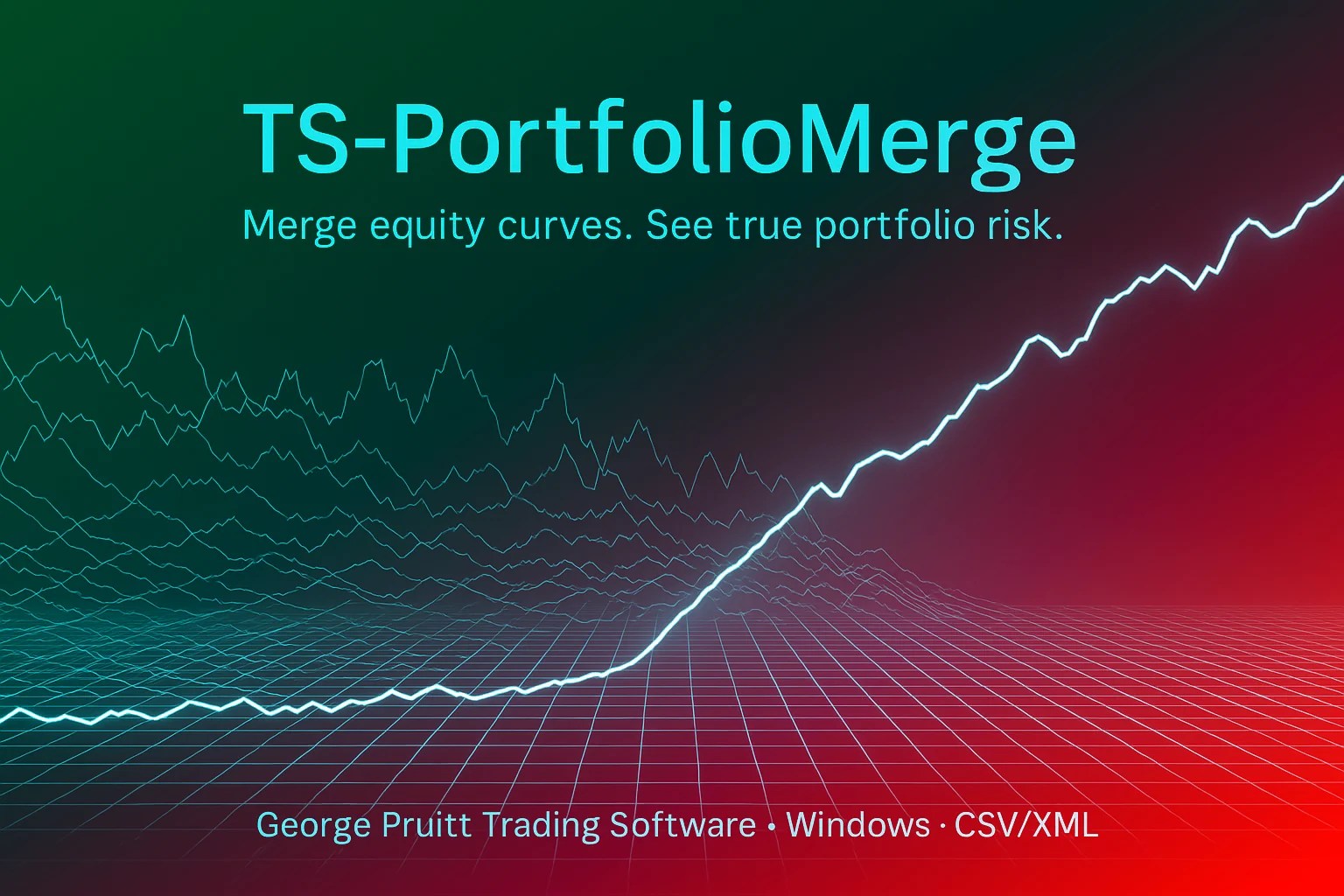 The TradeStation ecosystem is built around independent charts: one system on one market. That approach is perfect for unit tests, but it is less helpful for portfolio questions such as “Do these strategies’ drawdowns hit at the same time, or do they offset?” Historically you had to merge results by hand or wrestle with Portfolio Maestro. Its interface and performance are not ideal for fast exploration across large universes. TS-PortfolioMerge fills this gap. It pulls daily equity from multiple TradeStation or MultiCharts performance reports, merges them into a single portfolio equity curve, and lets you compare mixes in seconds. The software was created by George Pruitt to replicate the tools he has relied on for decades, without the complexity or cost of enterprise packages.